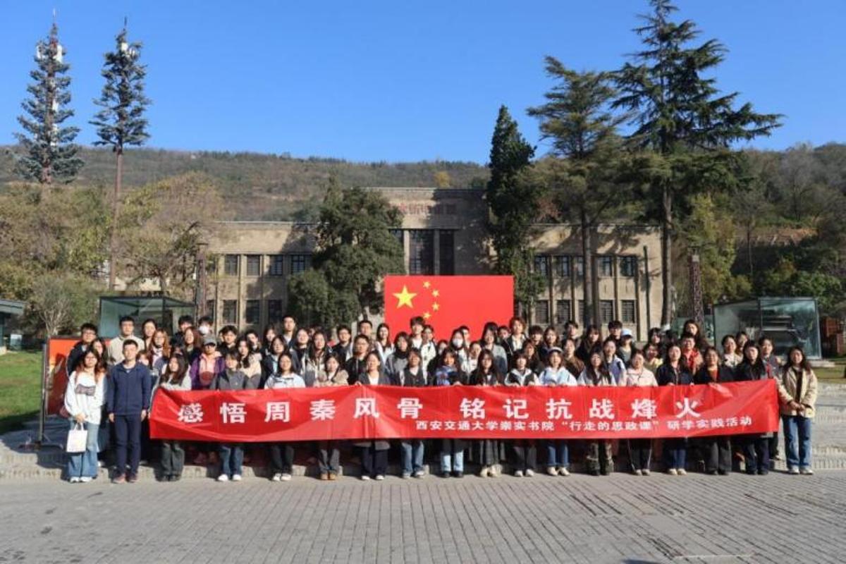 为深入学习贯彻党的二十届四中全会精神,准确把握习近平文化思想的核心内涵,11月15日,崇实书院党总支组织师生80余人前往历史文化名城宝鸡市,开展“感悟周秦风骨,铭记抗战烽火”研学实践活动,崇实书院党总支秘书、团委副书记薛成,辅导员李瑞昕及党团学生骨干、2025年秋季学期发展对象等参加活动。
