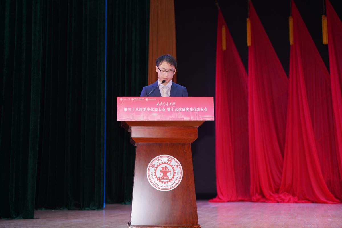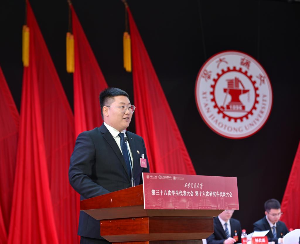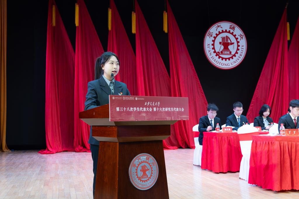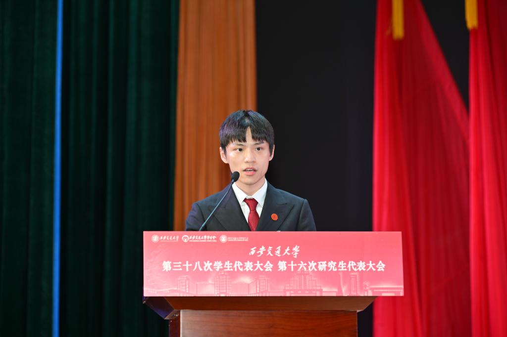 第三十八次学生代表大会执行主席丁丁作题为《厚植家国情怀,弘扬西迁精神;锐意改革创新,热诚服务同学;团结带领广大同学为学校建设中国特色、世界一流大学挺膺担当》的工作报告;第十六次研究生代表大会执行主席吕泽州作题为《胸怀“国之大者”,牢记青春使命;矢志科技报国,勇担时代重托;奋力谱写为全面建设社会主义现代化国家贡献智慧力量的交大篇章》的工作报告。