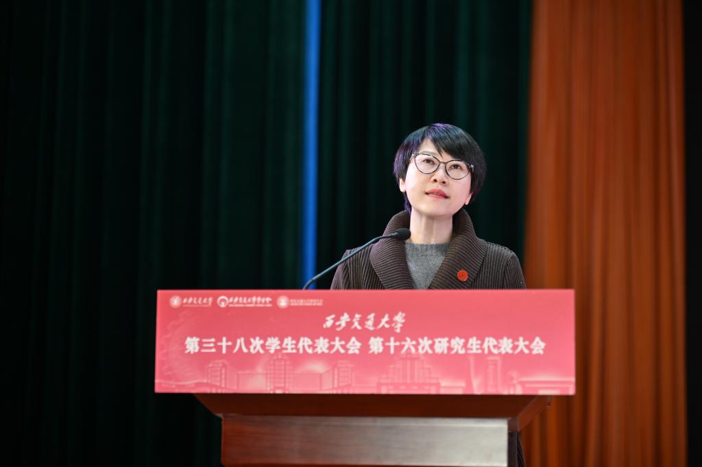 王欢代表学校党委向大会的召开表示热烈祝贺,高度肯定学生会、研究生会组织主动围绕学校中心大局开展的各项工作以及所取得的成绩。她指出,新时代学生会、研究生会要紧紧围绕学生会组织的根本任务、政治责任和工作主线,推动学生工作再上新台阶,一是要厚植理想信念,引领广大同学锚定航向;二是要主动担当作为,彰显交大青年实干本色;三是要倾心服务同学,推动校园建设焕新提质。明年是西安交通大学建校130周年暨西迁70周年,她寄语交大青年用奋斗擦亮青春底色,用实干书写交大华章,为强国建设、民族复兴贡献交大青年的智慧和力量。