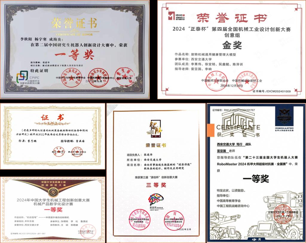 近五年,团队指导学生获全国大学生机器人大赛、机械工业设计创新大赛等竞赛一等奖60余项,获批国家自然科学基金青年学生基础研究项目1项,6人次获陕西省优秀博士学位论文,17人次获校级优秀学位论文,15人次获国家奖学金,百余人次获企业奖学金与荣誉称号,彰显育人质量。毕业生70%扎根西部、服务国需,成为科技报国的坚实脊梁。
