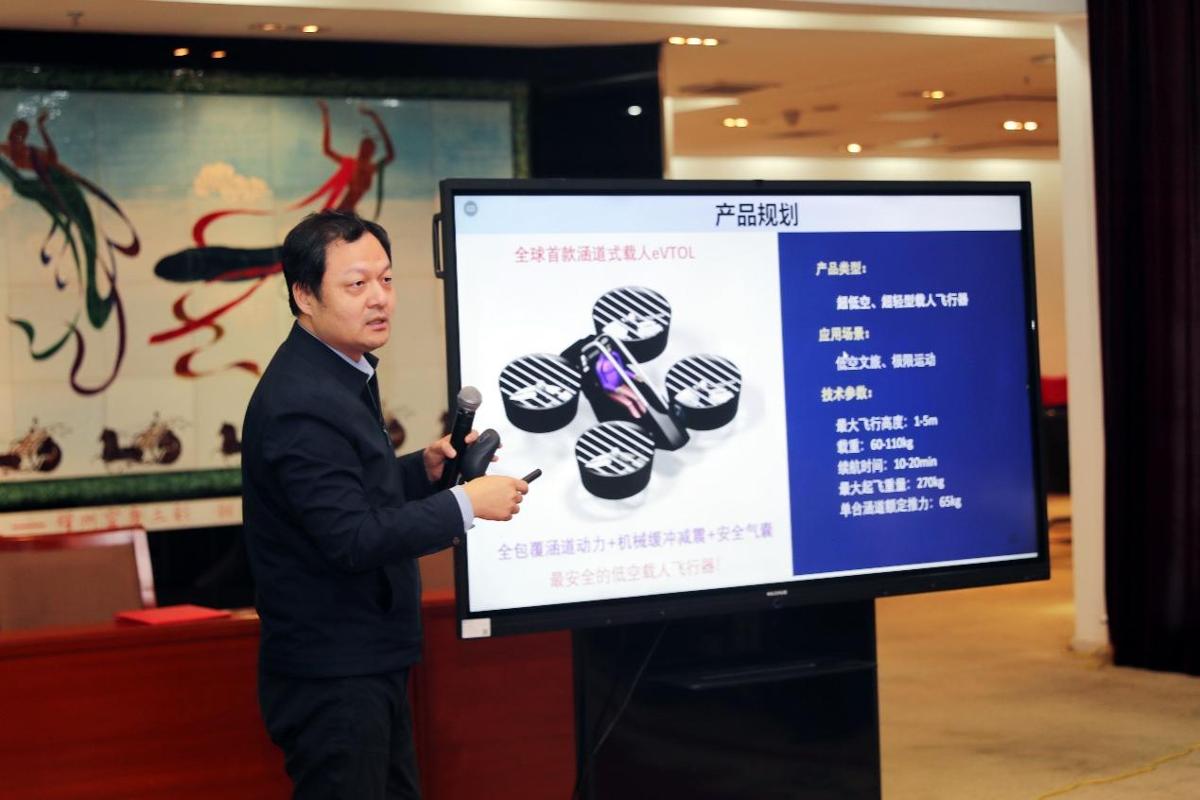 西安交大航天学院孙剑教授向与会人员详细介绍了多级电动涵道推力器的关键技术突破及研究成果。该创新技术已经迈出从实验室走向产业化的关键一步,成立了北京广翼航空科技有限公司,道恩集团为公司A轮领投方,融资规模达数千万元,主要用于产线建立、市场开拓以及电动涵道推力器飞行器的研发工作。双方将以共建研究院为契机,系统整合产学研用全链条资源,共同突破关键技术瓶颈,推动科技成果高效转化与产业化落地。