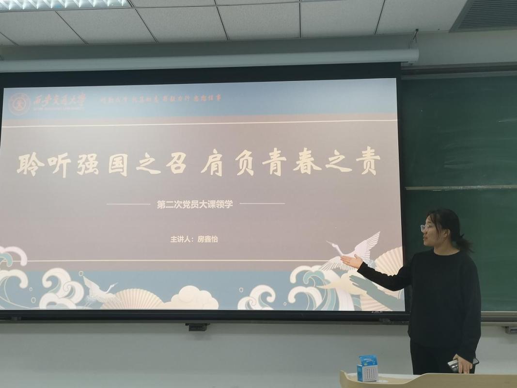 活动以理论学习环节开始。房鑫怡同志以“聆听强国之召,肩负青春之责”为题,分享西安交通大学第二次党员大课学习心得。王绪冉同志以“深学笃行党的二十届四中全会精神,凝聚奋进‘十五五’现代化新征程”为题,解读全会核心内涵与重大意义。