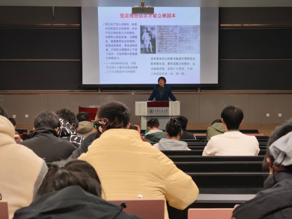 苗晋英围绕理想信念在党的建设中的根本性地位展开系统阐释。她指出,对马克思主义的信仰、对社会主义和共产主义的信念,是中国共产党人的政治灵魂,是在风险挑战面前保持坚定立场和强大意志的根本支撑。她特别指出,革命先辈的家书是最生动鲜活的理想信念教材,当代青年应从中汲取精神力量,真正做到内化于心、外化于行。