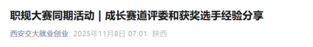 据悉,西安交大第十二届大学生职业规划大赛校赛复赛、决赛将于11月下旬至12月中旬举办,比赛中将遴选优秀选手晋级职规赛省赛和全国赛,同时还将继续举办职规赛同期活动,以赛事为纽带加深学生对于行业和职业规划的理解和体会,助力学子深化行业认知与职业规划,稳步成长。