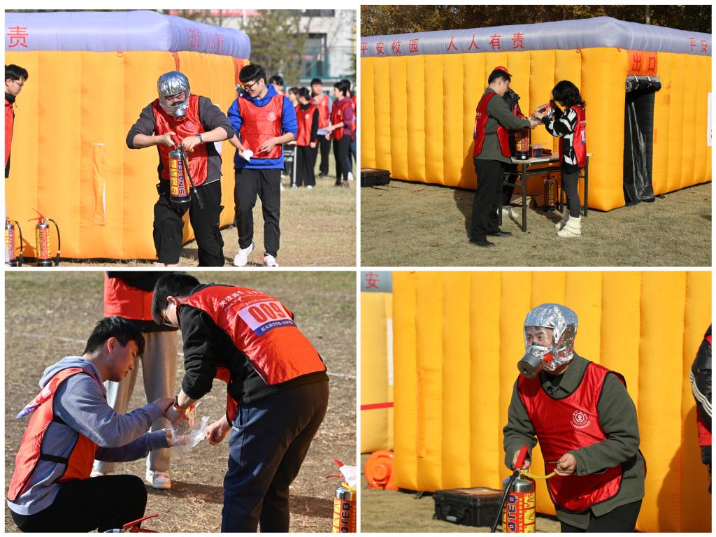 “烟雾灭火”环节里,参赛队员佩戴防烟面罩迅速穿越模拟烟雾环境,精准完成装备传递后,手持灭火器对准“火源”果断喷射,整套流程规范有序、干脆利落。