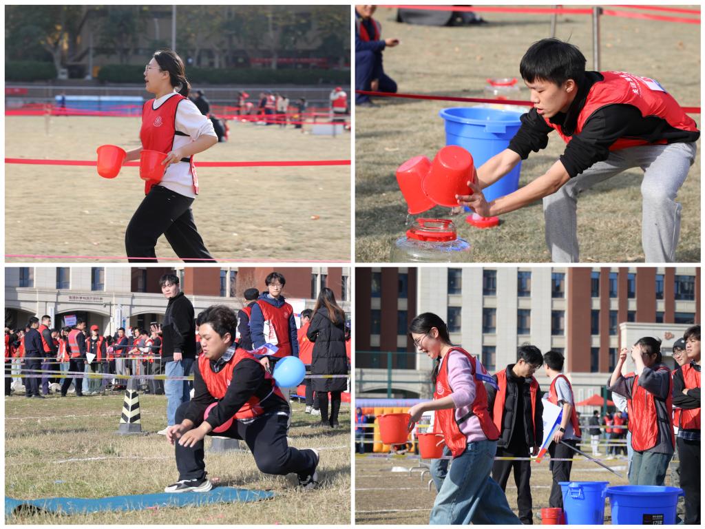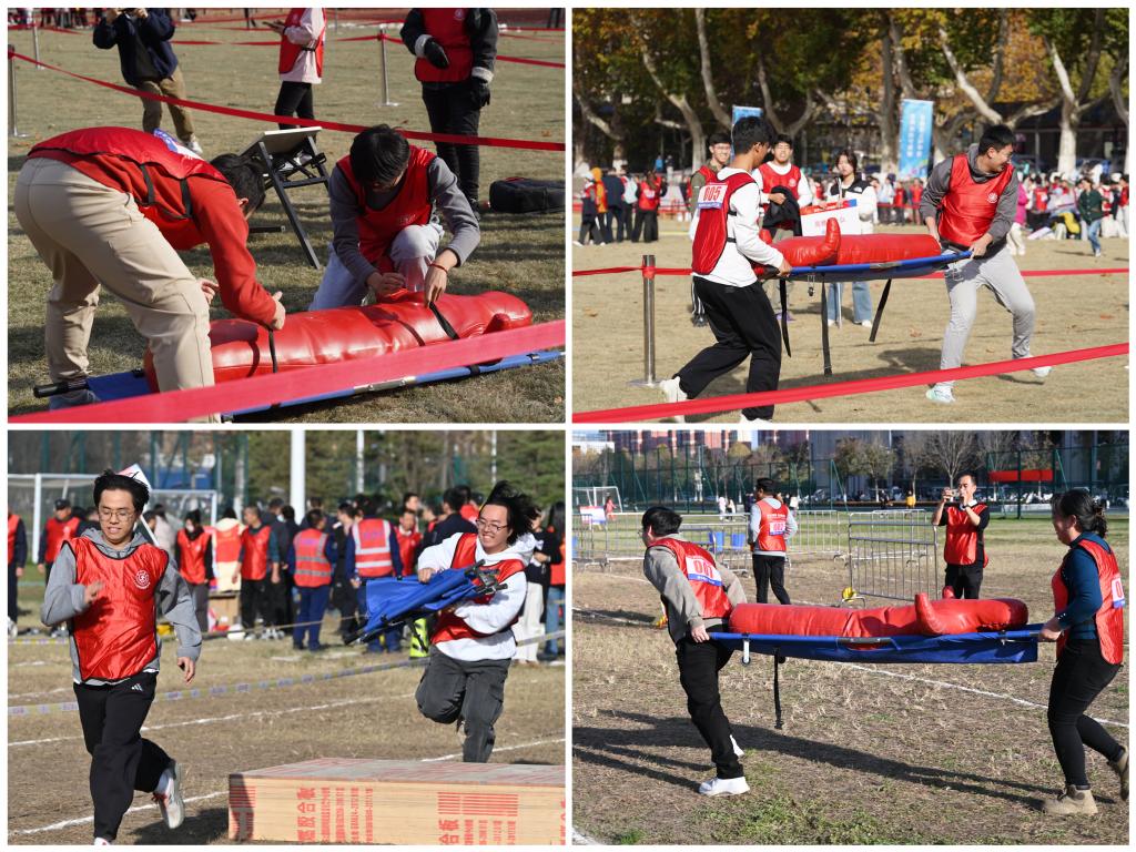 “危急时刻”项目中,队员们接力奔跑、平稳运水,精准把控水量倒入量筒,在默契配合中高效完成应急供水任务。