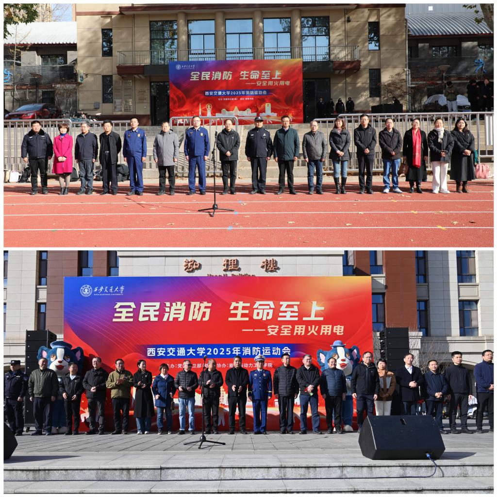 全民消防担使命,以赛促练守平安。11月19日至20日,西安交通大学第35届“119”消防月消防运动会分别在兴庆校区东南田径场、创新港涵英楼北运动场举行。作为学校消防安全宣传教育的重要实践载体,本次运动会以“全民消防,生命至上”为主题,深度融合消防实操技能与体育竞技元素,吸引全校共计54支学生队伍及22支教职工队伍同台竞技,在规范化、实战化的比拼中锤炼安全技能,夯实校园消防安全根基。西安交通大学党委常委、副校长柴渭,碑林区消防救援大队、沣西新城消防救援大队、兴庆路派出所、大王派出所、太乙路街道办、高桥街道办、创新港社区等共建单位相关领导,学校相关职能部处、学院、书院负责同志出席活动。