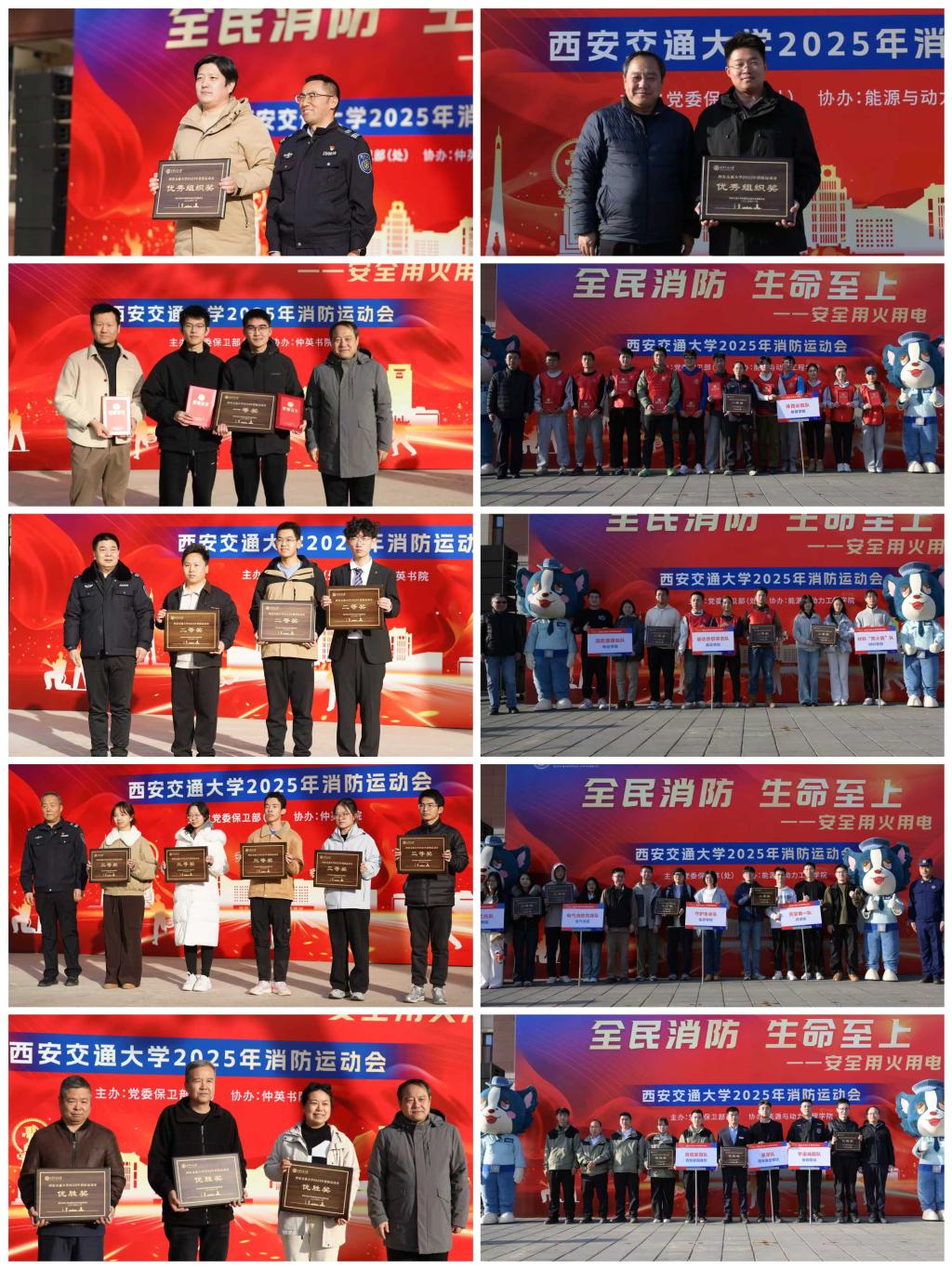 经过多轮激烈角逐,运动会分别评选出一、二、三等奖及优秀组织奖、职工队优胜奖等多个奖项。其中,仲英书院、能动学院分获兴庆校区、创新港校区消防运动会优秀组织奖,各获奖单位及队伍代表在颁奖典礼上接受表彰。