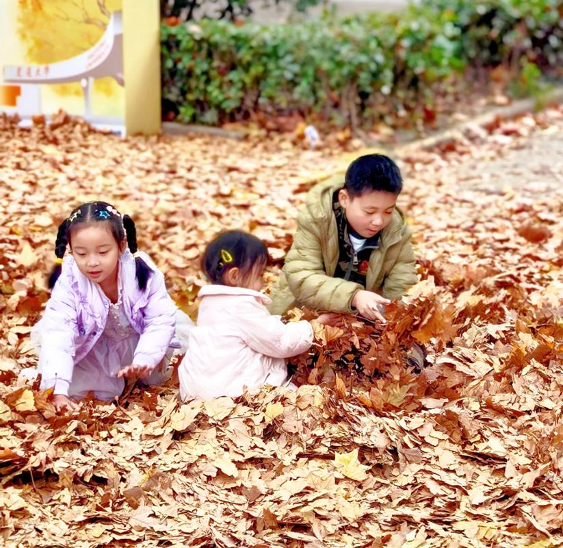 午后,梧桐道上的满地黄叶铺就了天然“游乐场”。孩子们在落叶间嬉戏玩耍,稚嫩的笑声为校园增添了一份灵动与活力,他们的身影,绘制成一幅温馨的童真画卷。