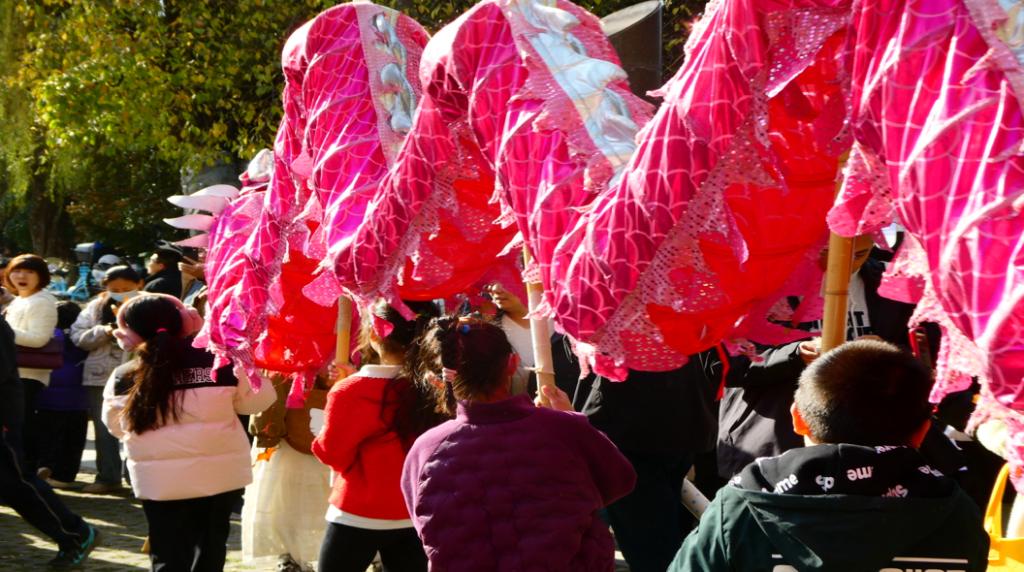 梧桐雅集活动盛大启幕,彩龙腾跃舞动,人们围聚驻足,目光随着龙身起伏。演员们挥舞道具,灵活地穿梭于人群之间,为梧桐节注入满满活力与喜庆氛围。