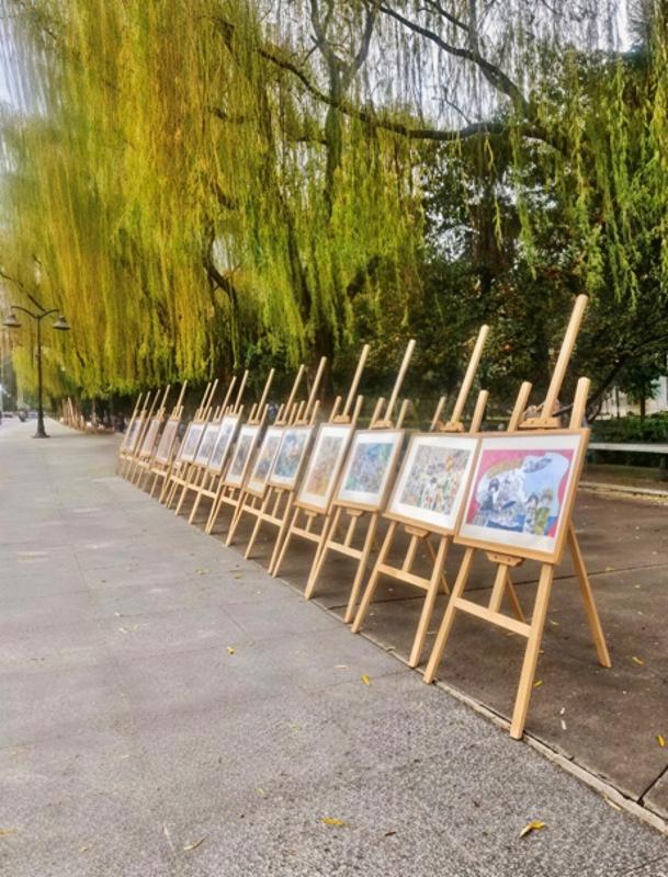 沿着连排舒展的画架向前,满纸童趣跃然纸上。目光所及,斑斓的色彩与纯真的笔触交织,让观者不自觉会心一笑。