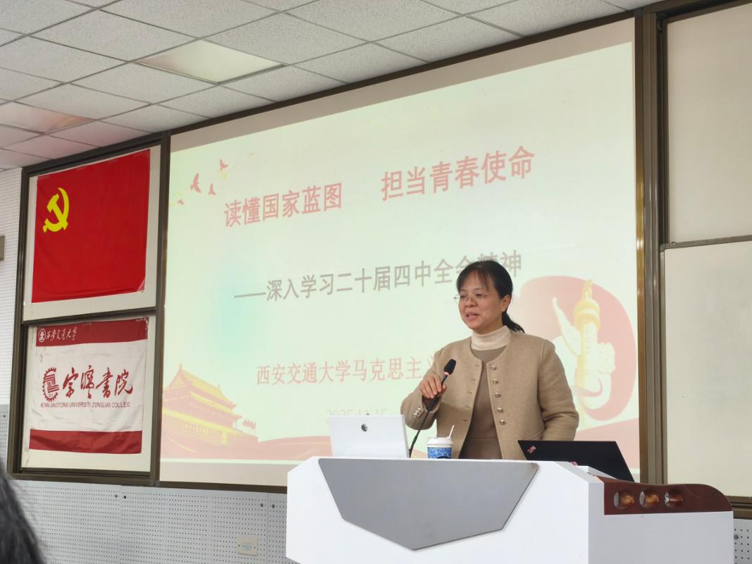 陆淑敏副教授以“读懂国家蓝图,担当青春使命——深入学习党的四中全会精神”为主题进行了系统解读。她从党的四中全会召开基本意义切入,结合《中共中央关于制定国民经济和社会发展第十五个五年规划的建议》核心内容,详细阐释了“十四五”时期我国发展的重大成就,以及“十五五”时期“高质量发展取得显著成效、科技自立自强水平大幅提高”等发展目标。