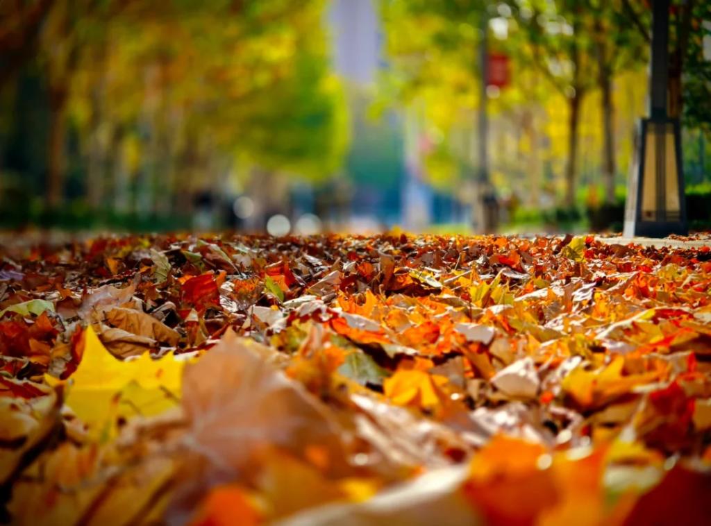 道旁梧叶染金黄,庭外枝桠沐斜阳。