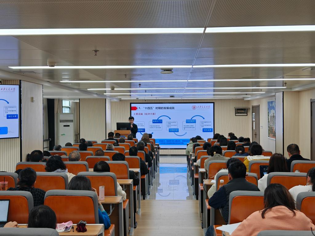 在专题报告环节,刘航以《对中共中央关于“十五五”规划建议的解读与思考》为题,结合党的二十届四中全会公报内容,系统梳理了国家在“十四五”时期的发展成就,深入阐释了党中央对于“十五五”时期的历史方位与指导思想,并围绕现代化产业体系、高水平科技自立自强、强大国内市场建设等关键任务展开解读。他表示,构建高水平社会主义市场经济体制是推动高质量发展的核心动力,并具体阐述了其在发展质量、资源配置与动员能力方面的系统优势。整场报告逻辑严密、内容翔实,为与会人员深刻把握党的二十届四中全会的精神实质和核心要义提供了重要指导。