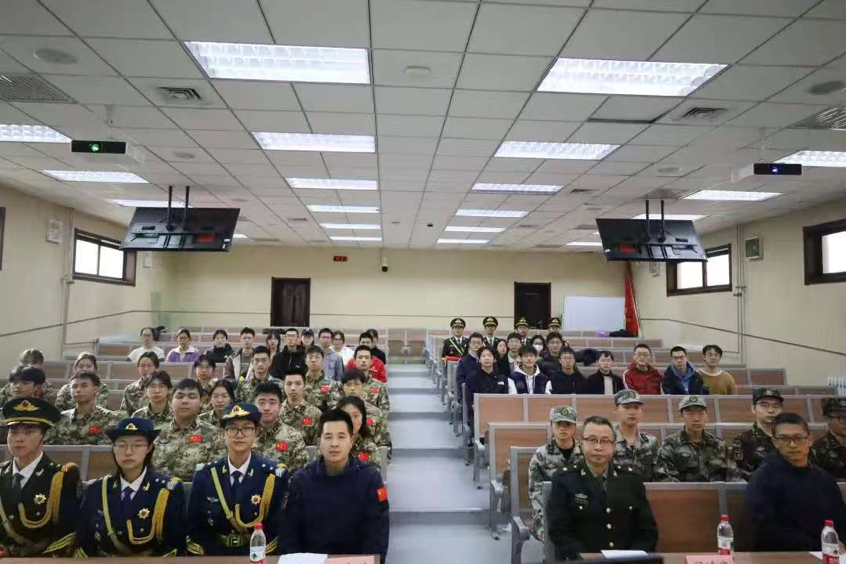 11月26日,西安交通大学国旗护卫队第三十二届换届大会在国防教育中心召开。人民武装部副部长、军事教研室主任问鸿滨教授,国旗护卫队指导教师王志朋,军事教研室办公室副主任、强军先锋队指导教师刘玉青,强军先锋队代表及国旗护卫队第三十届至三十二届队员共同参会。开场前,播放了浙江大学、东南大学等六所高校国旗护卫队的祝福视频.仪式正式开始后,全体人员起立肃立,迎接五星红旗入场并齐唱国歌。