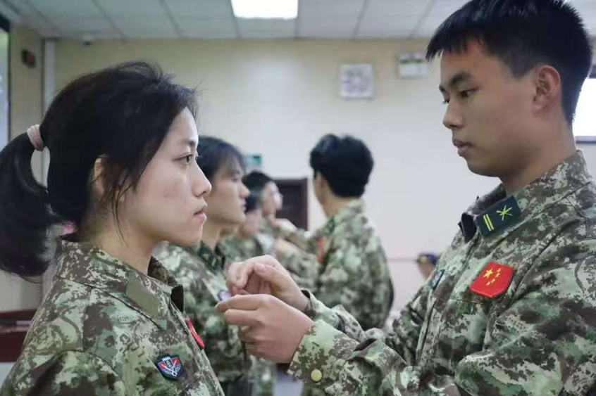 张晓宇在发言中回顾三年护旗历程,明确新一届队伍建设规划与工作目标,承诺将以身作则守护队伍荣誉。随后,王志朋宣读晋衔、授衔命令,为张晓宇等28名队员分别授予高、中、初级队衔,并完成领章佩戴仪式。