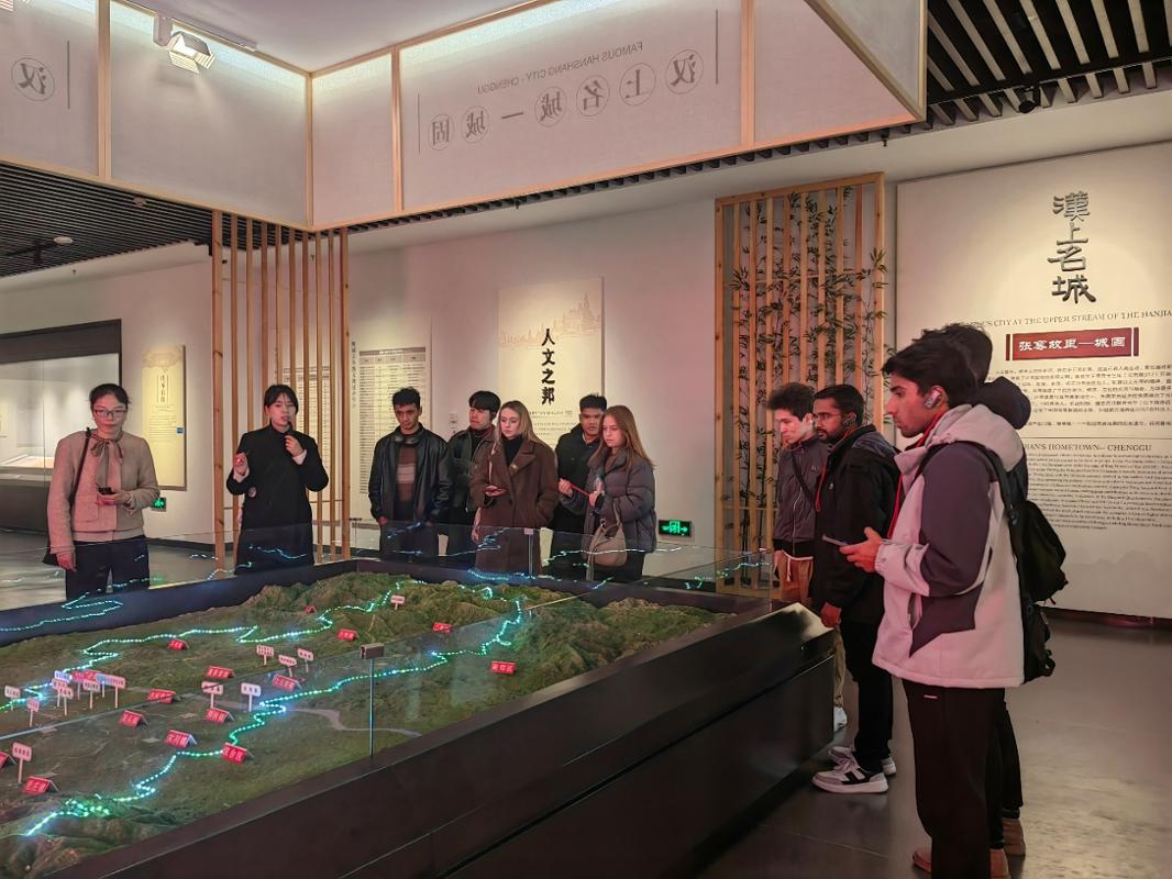 国际学生们在纪念馆讲解员的引导下,参观了张骞纪念馆主题展厅。通过详实的史料、珍贵的文物和生动的讲解,学生们深入了解了城固悠久的历史文化、张骞的生平以及他为开辟丝绸之路、促进东西方文明交流所做出的不朽贡献。来自塔吉克斯坦的学生多铎表示:“张骞的故事非常震撼,他克服重重困难开辟了互通中西方的道路,这让我更加理解了‘一带一路’倡议的历史背景和深远意义。能来到他的故乡参观学习,是一次非常难忘的经历。”