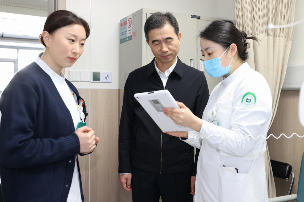 张军林一行先后到医院消毒供应中心、无陪护病房、智慧医院建设部、智慧安防中心、口腔健康科普基地、培训中心等区域,详细了解医院诊疗服务流程、智慧化建设进展、口腔健康科普等工作情况,与一线医务人员深入交流。