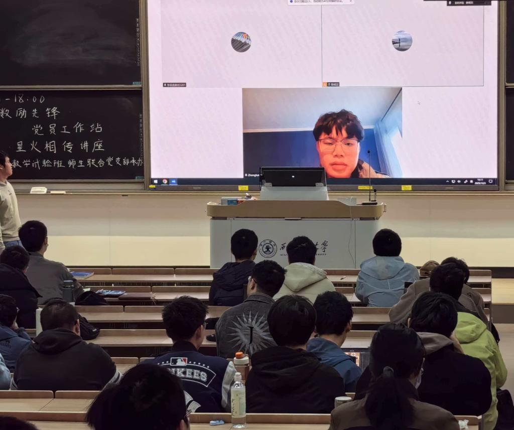 首个学科类报告以“π·星火相传”为主题,由数学学院励志书院数学试验班师生联合党支部承办,邀请到学院优秀校友、青年数学家陶中恺博士带来“数学学习、研究与成长”的线上主题分享。陶中恺博士本科阶段便成绩优异,屡获顶级学科竞赛大奖,2020年毕业后赴美国加州大学伯克利分校攻读博士学位,2025年入职全球顶尖科研机构——法国高等科学研究院。