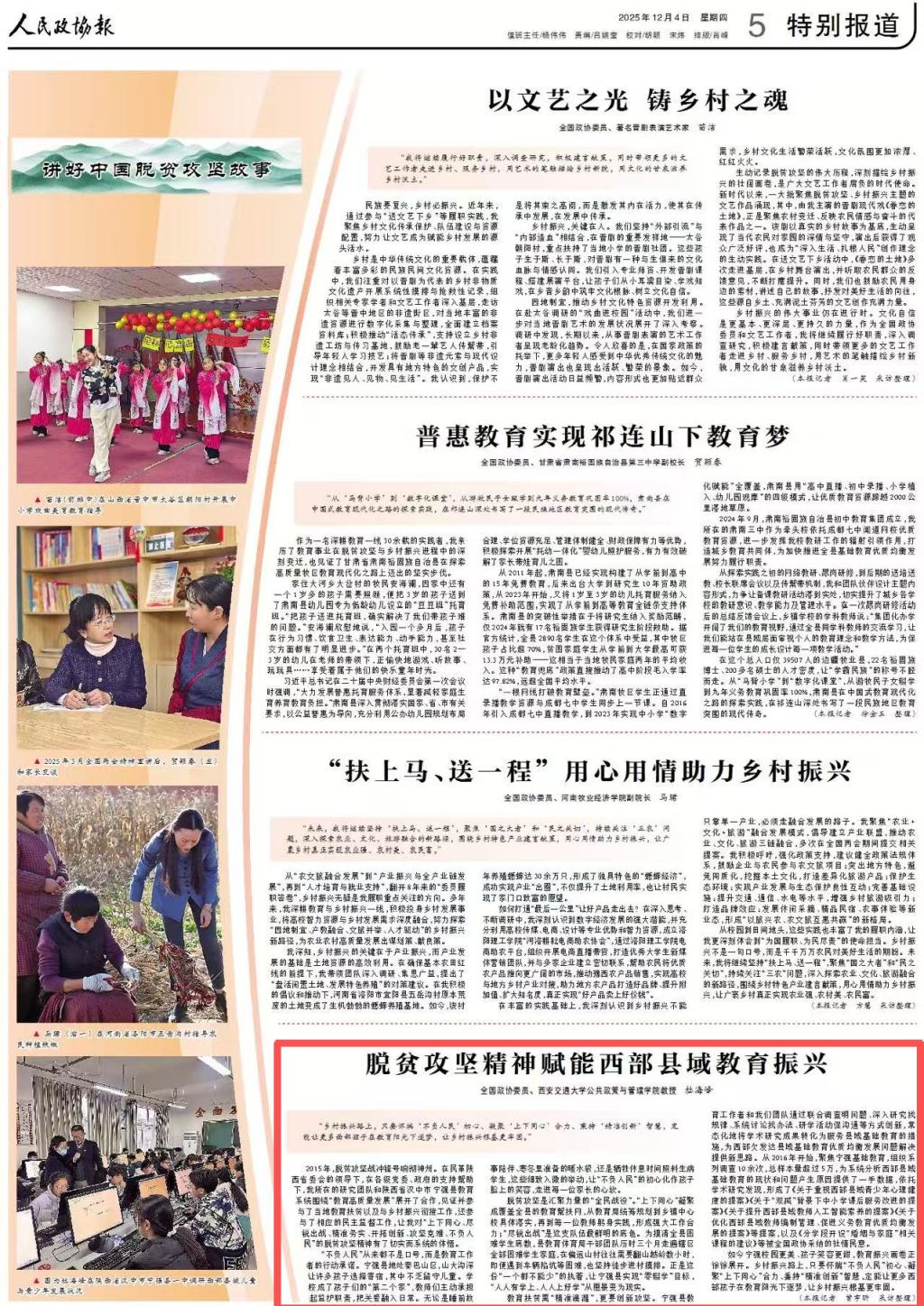 【人民政协报】报道西安交大杜海峰:脱贫攻坚精神赋能西部县域教育振兴