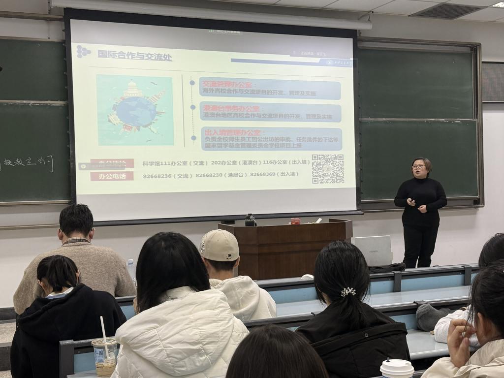 闫婷老师以海外留学的优势为出发点,分析了不同国家高校的学科特色与专业优势,聚焦出国(境)业务与奖学金申报,为新生出国(境)深造政策进行了系统讲解。她详细梳理了因公出国审批流程、材料准备等关键环节,提醒同学们规避流程误区,确保出行与报销顺利推进。闫婷老师以条理清晰的讲解帮助新生深入了解相关政策,为未来海外学习、交流规划提供有力参考,助力同学们拓宽国际视野,展望多元未来。
