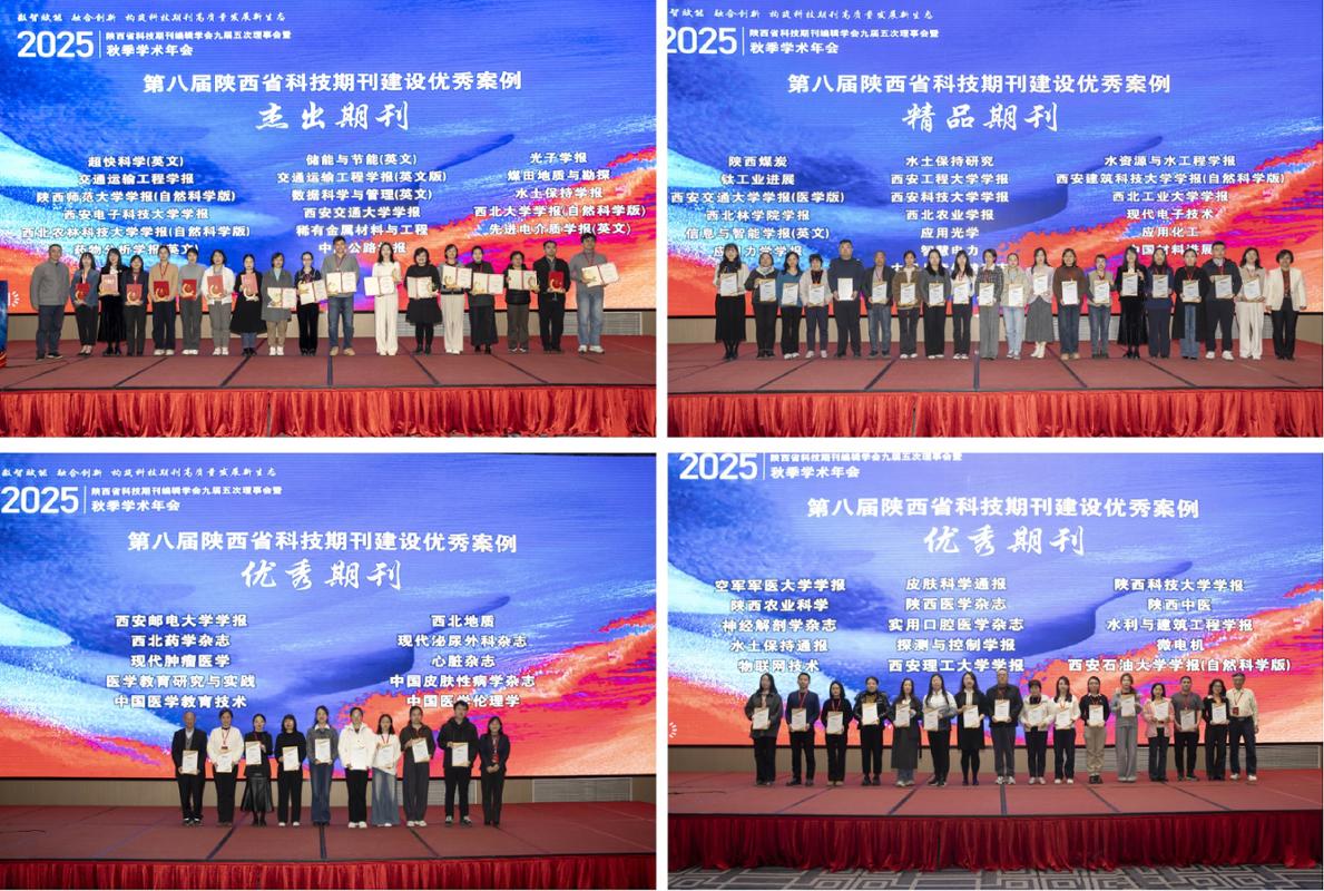 近日,陕西省科技期刊编辑学会九届五次理事会暨2025年秋季学术年会在陕西安康举行。会议公布了第八届陕西省科技期刊建设及编辑培育优秀案例征集活动入库案例名单,其中,科技期刊建设优秀案例共109例,编辑培育优秀案例77例。西安交大主办的15种期刊入选科技期刊建设优秀案例,10名编辑人员入选编辑培育优秀案例。