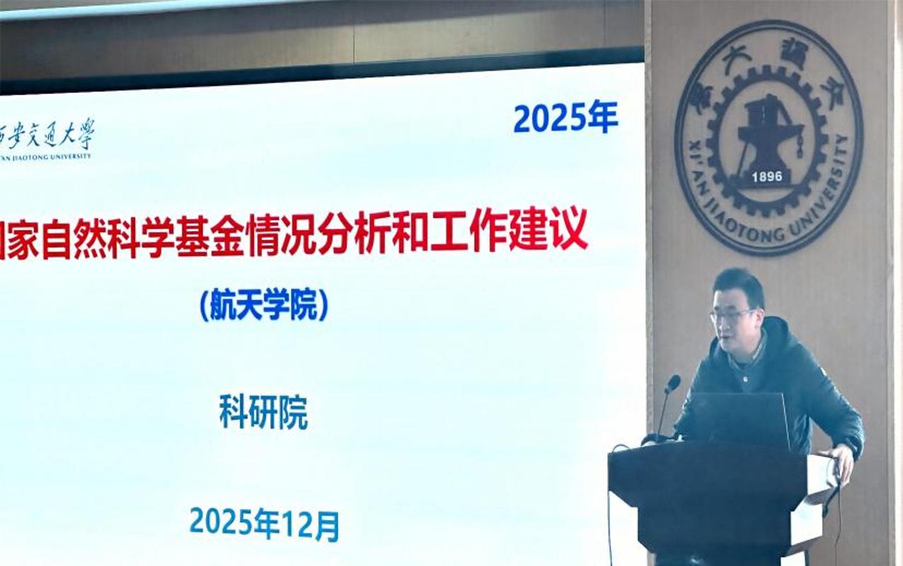 12月9日下午,航天航空学院在创新港2-4197会议室召开2026年国家自然科学基金申报动员会,全面部署新一年的基金项目申报工作。科研院副院长刘永忠,基础与海外合作处副处长何会,航天航空学院院长申胜平,副院长刘益伦、张虎,学院各系室中心主任及教师代表60余人参加会议。会议由刘益伦主持。