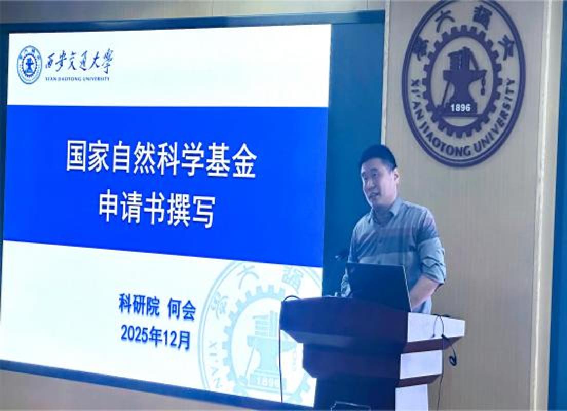 何会对国家自然科学基金申请书撰写作了专题辅导。他从申请书的整体框架设计、科学问题凝练、创新点提炼、研究方案论证等方面进行了系统讲解,对不同类型项目的撰写特点和注意事项作了详细说明。他强调,申请书是与评审专家“对话”的核心载体,关键在于逻辑清晰、论证充分、亮点突出、格式规范。