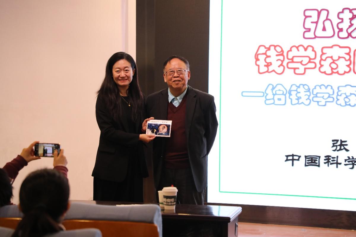 报告中,张德良教授结合史料与个人回忆再现了钱学森波澜壮阔的一生:从远赴海外留学,到冲破藩篱归国;从立足国家战略需求绘制国防科技事业蓝图,到倾心培育新中国首批年轻科技人才的无私奉献。正是以钱学森为代表的老一辈科学家和一代代年轻科研工作者的不懈努力才让中国人民过上了“有尊严的幸福生活”。