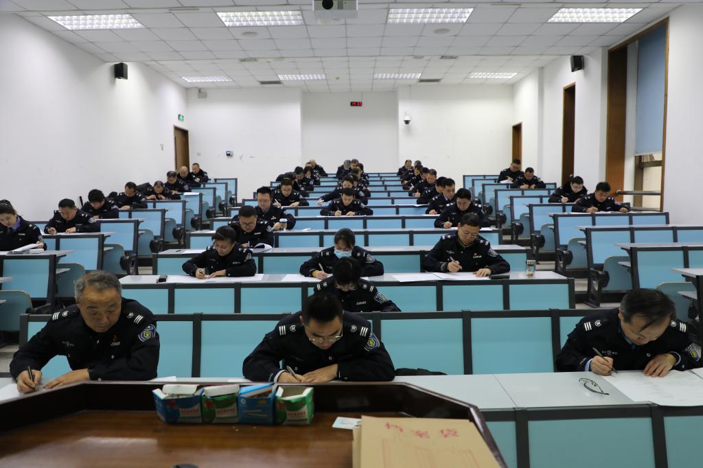 理论笔试环节采用闭卷考试形式,试题涵盖法律法规、校史校情、应急处置等核心内容。试卷设置单选、多选、判断、简答四类题型,包括报警求助处置流程、消防安全“一懂三会四个能力”等业务实操知识,全面检验保卫干部“懂法规、懂校情、熟公文写作、熟公务管理”的理论功底。考场上,全体保卫干部认真审题、规范作答,展现出扎实的专业知识储备和严谨的工作态度。