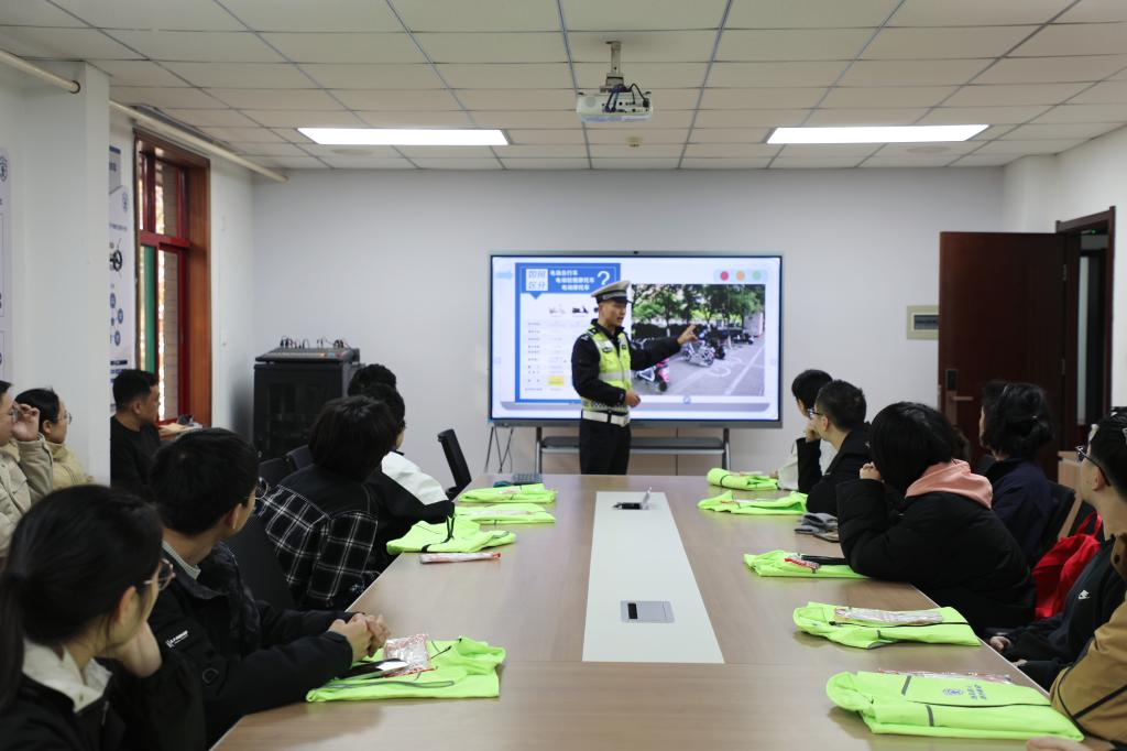 为进一步规范校园摩托车、电动自行车管理,切实保障师生人身安全与校园交通秩序,在第十四个“122”全国交通安全日之际,保卫处联合西安市交警支队碑林大队,于12月11日下午开设“文明骑行守规范,校园安全共守护”交通安全专题劳动教育课程,邀请交警碑林大队四中队民警王磊、段迪进校宣讲交通安全知识,带领学生开展校园摩托车、电动自行车骑行安全专项治理,以劳育赋能安全教育,以实践筑牢安全屏障。