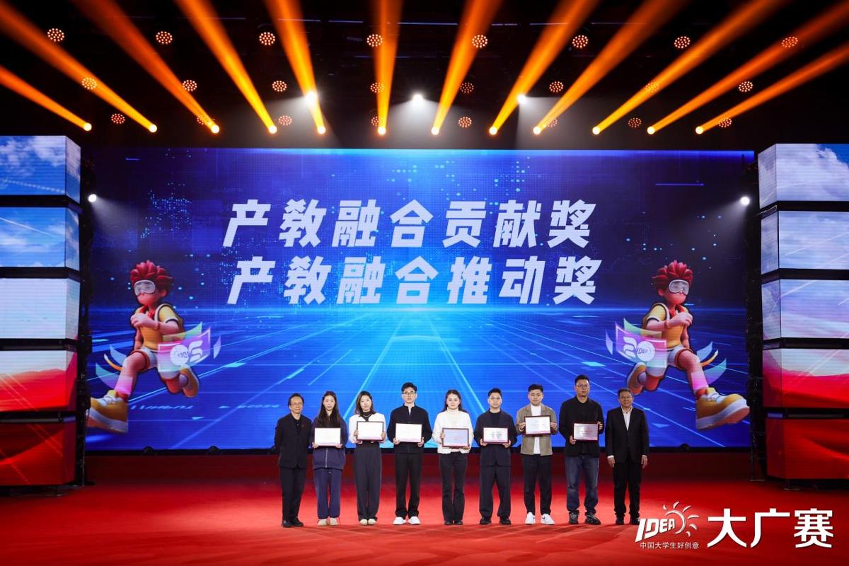活动现场,汪文斌受邀颁发全国大学生广告艺术大赛产教融合贡献奖、产教融合推动奖,阚平受邀颁发协同育人典范个人奖、产教融合爱心奖。
