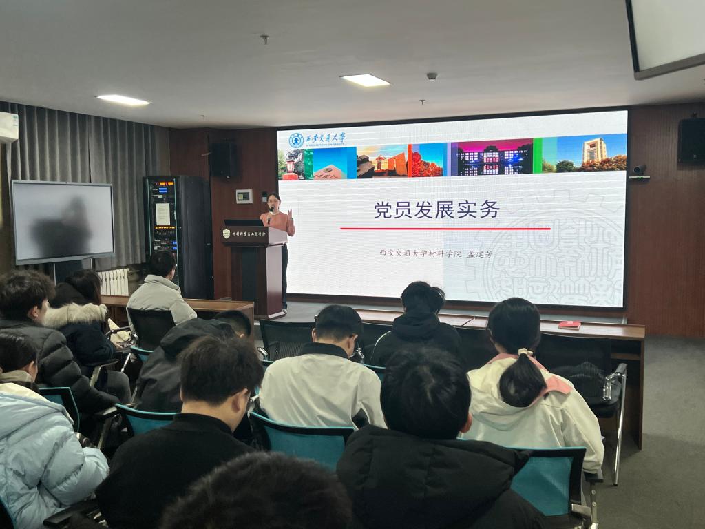 培训第二阶段,材料学院团委书记、辅导员孟建芳老师围绕“党员发展实务”进行了系统讲解。孟建芳从党员发展的条件、依据出发,详细阐述了发展党员工作的基本要求和原则,指出发展党员必须坚持政治标准第一,严格程序、保证质量。随后,孟建芳对党员发展的完整流程进行了逐步梳理,从递交入党申请书、确定入党积极分子、确定发展对象、发展预备党员、预备党员转正等关键环节,进行了清晰说明,帮助同学们准确把握各阶段的重点与规范。最后,孟建芳结合实际案例,讲解了常用发展文书的撰写要点,对思想汇报、入党志愿书等材料的内容要求和注意事项进行了具体指导,具有很强的实践性和指导性。