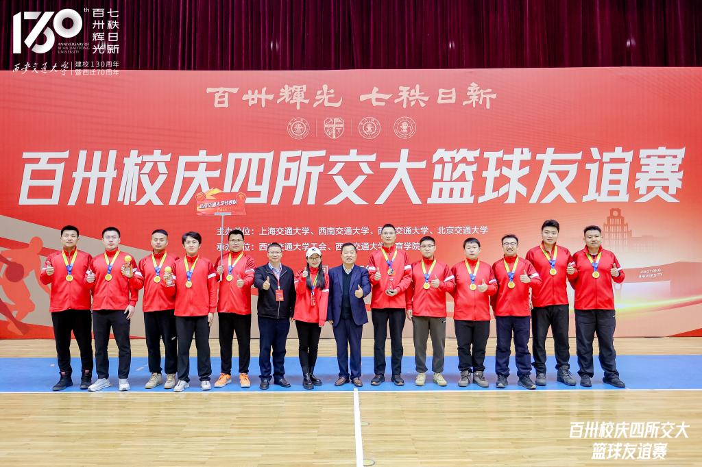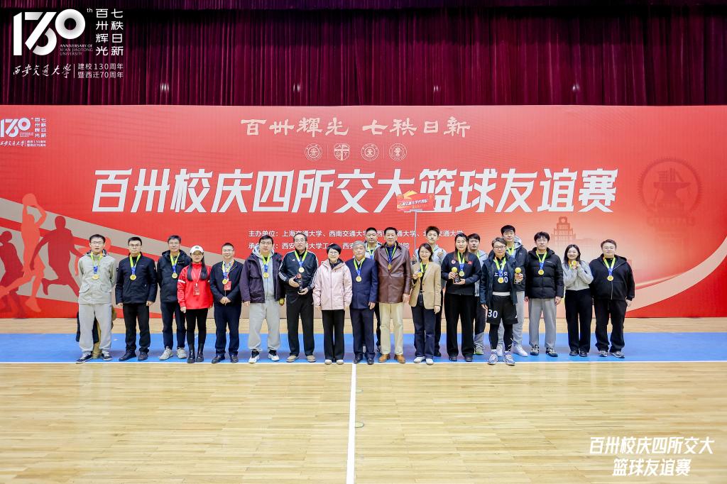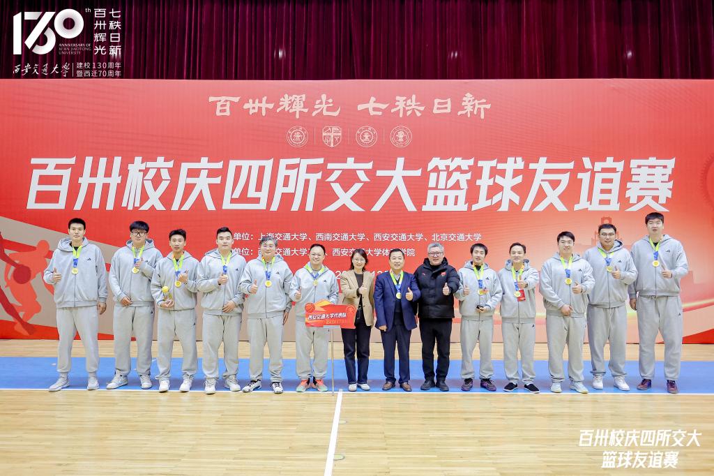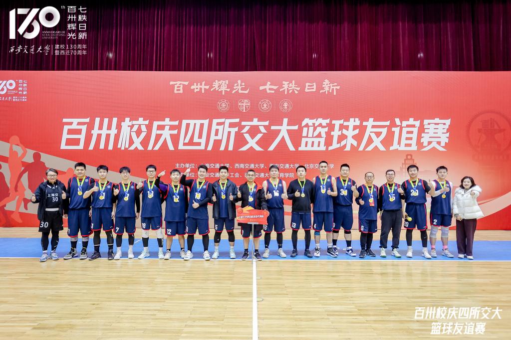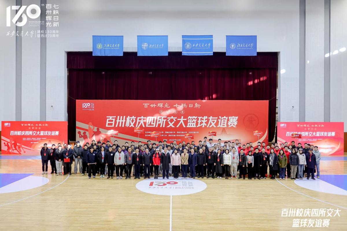 同溯南洋根脉,共襄百卅荣光。为庆祝交通大学建校130周年,深化兄弟高校情谊,促进体育文化交流,2025年12月12日至14日,由上海交通大学、西南交通大学、西安交通大学、北京交通大学四校联合主办,西安交通大学工会和西安交通大学体育学院承办的百卅校庆四所交大篮球友谊赛,在西安交通大学思源学生活动中心举办。