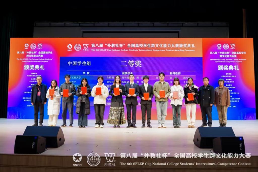 12月14日,第八届“外教社杯”全国高校学生跨文化能力大赛在上海外国语大学落幕。由西安交大英语专业蓝若茜、核工程与核技术专业张维周和环境工程专业马哲三位同学组成的代表队凭借扎实的英语功底、深厚的跨文化素养与出色的团队协作能力,荣获全国总决赛二等奖。外国语学院董艳云、朱立芸、孙长虹三位教师荣获优秀指导教师奖。