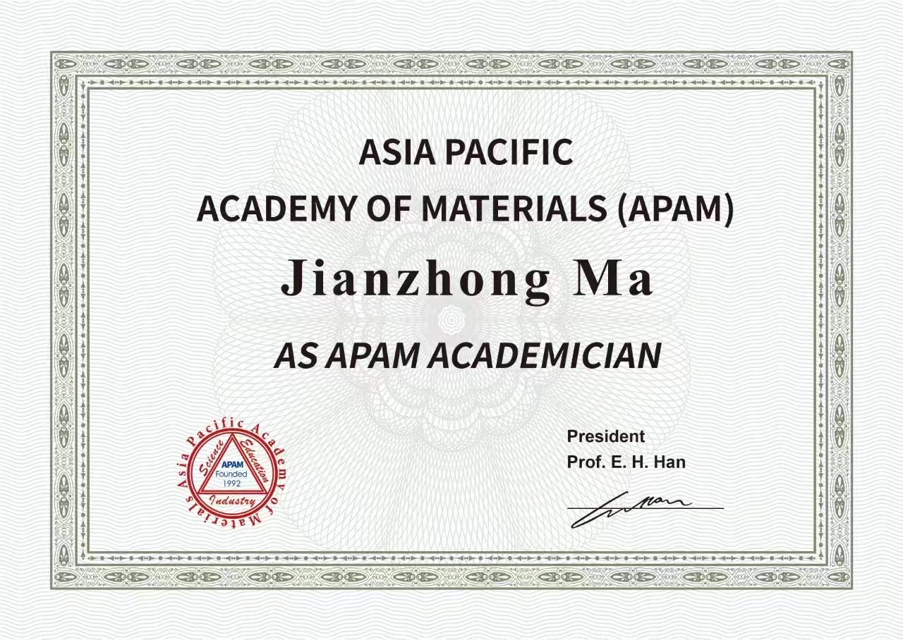 近日,第三届世界材料大会(2025)、2025亚太材料科学院(Asian Pacific Academy of Materials--APAM)会议在中国桂林召开。西安交通大学化工学院领军学者马建中教授于2023年成功当选亚太材料科学院院士,并在本次会议中正式获颁亚太材料科学院院士证书。