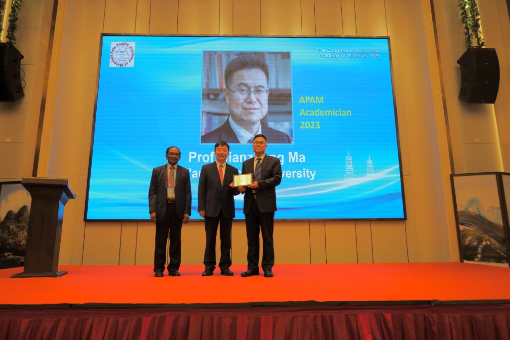 亚太材料学院(APAM)院长韩恩厚院士为马建中院士颁发证书