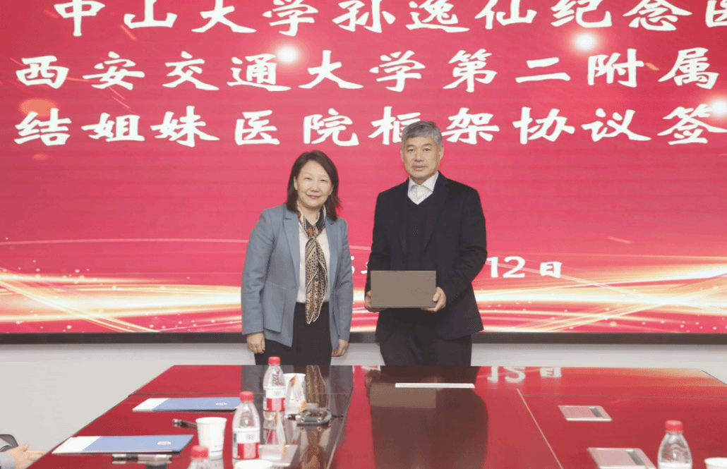 12月12日下午,西安交通大学二附院举行了与中山大学孙逸仙纪念医院缔结姐妹医院框架协议签约仪式。中国科学院院士、中山大学医学部主任、孙逸仙纪念医院院长宋尔卫,西安交大医学部主任吕毅,二附院党委书记刘昌、院长张蓬勃等双方领导及学科骨干参加签约会,共同见证两院开启深度合作新征程。