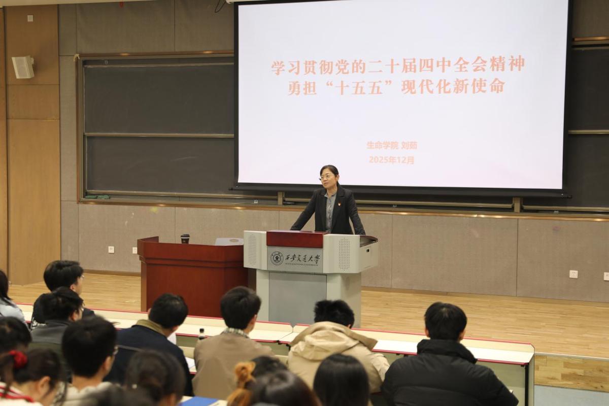 为深入学习贯彻党的二十届四中全会精神,引导研究生党员统一思想、凝聚奋进共识,近日,生命学院举办“信念领航”专题学习活动,生命学院党委书记刘茹以“学习贯彻党的二十届四中全会精神,勇担‘十五五’现代化新使命”为题作专题报告。全体研究生党员参加学习。