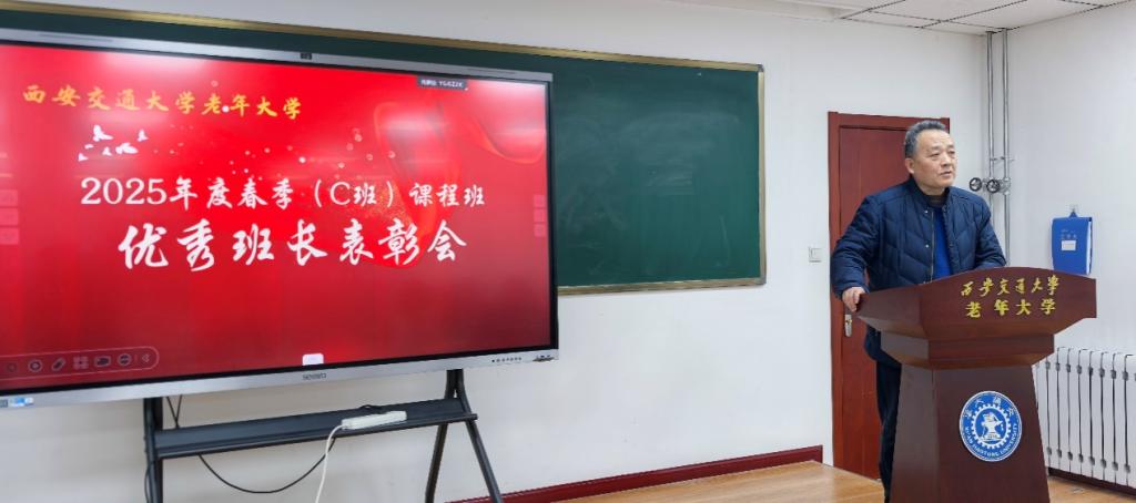 12月22日,西安交通大学老年大学召开2025年度春季课程班优秀班长表彰会,表彰先进、分享经验,弘扬奉献精神,凝聚集体力量。老年大学校领导与春季(C班)全体班长共同参会,副校长张西亚主持会议。