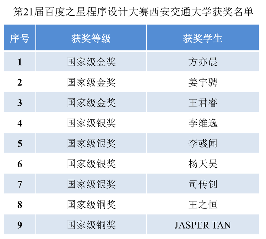 西安交大在第21届百度之星程序设计大赛中获佳绩