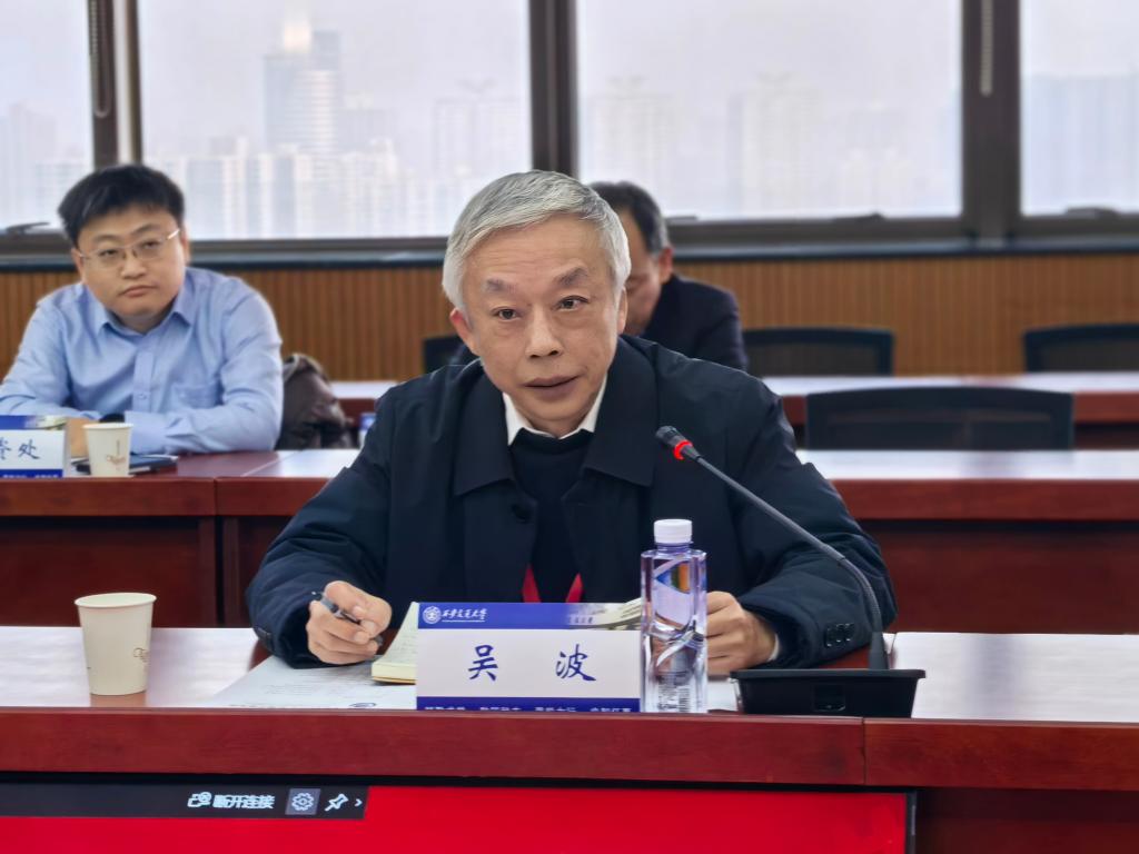 西安交大教务处处长王秋旺主持见面会第一阶段。第二阶段由吴波主持,并代表专家组说明了进校考查的目的及要求。