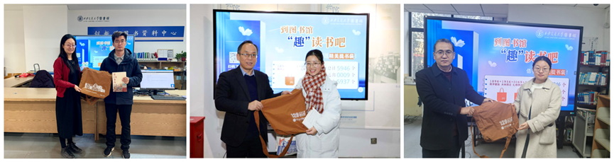 活动在钱学森图书馆、雁塔校区图书馆、创新港图书资料中心同步举办,图书馆馆长马忠统筹安排,副馆长杨峰、纪洁菲、魏青山分别值守各校区,亲手为读者递上这份承载百年文脉的“书香信物”。专属借书袋刚一亮相,便凭借其融合校史元素与实用设计的独特魅力圈粉无数,活动现场人头攒动,队伍从服务台蜿蜒至书架旁,不少师生特意提前到场等候。有人排队时仍手不释卷,有人与同伴分享领到限定周边的喜悦。据统计,活动首日参与师生便突破5000人次,部分校区借书袋早早告急,足以见得阅读文化在交大校园的深厚根基与强大号召力。