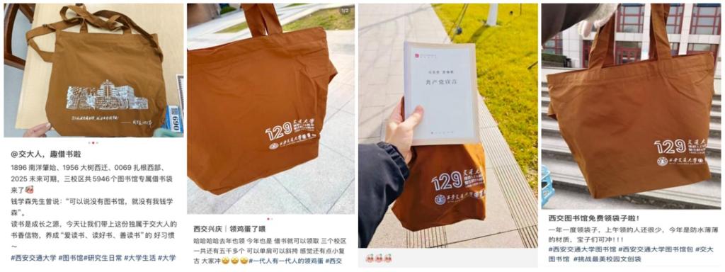 而在网络平台上,不少交大学子也晒出了这份“书香信物”。有同学笑称“一代人有一代人的鸡蛋要领”,去年没抢到今年终于得手;还有同学点赞借书袋“防水材质两用轻便”,称其是“独属于交大人的复古感”。大家纷纷感慨,这样的活动把校史教育和阅读推广藏进了日常的借书袋里,既让校园生活多了份趣味与仪式感,也让百年校史成了能捧在手里的温度,潜移默化间就把归属感和认同感种进了心里,是一次把文化传承做“活”了的创意实践。