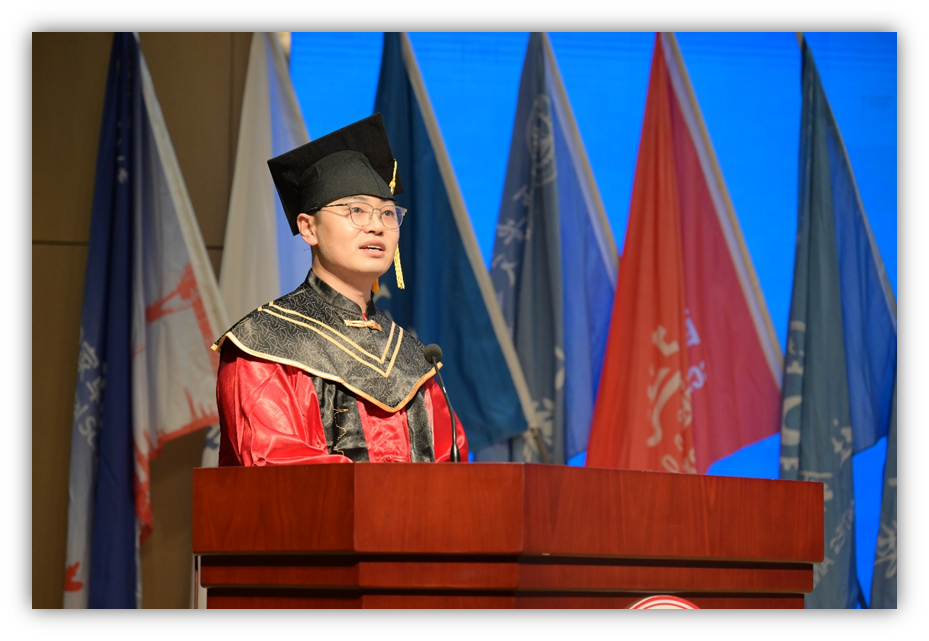 西安交大“优秀研究生标兵”“学术之星”“优秀研究生”获得者、电信学部博士毕业生吴思凡作为研究生代表发言。他表示,西迁精神不仅给予了我们深厚的精神滋养,更在科研之路上点亮了灯塔。学校的培养让我们深刻理解了科学研究与国家需求同频共振的核心要义。感恩母校、师长、家人的培育。毕业不是终点,而是新的起点,我们将在新的征程中继续书写华彩篇章。