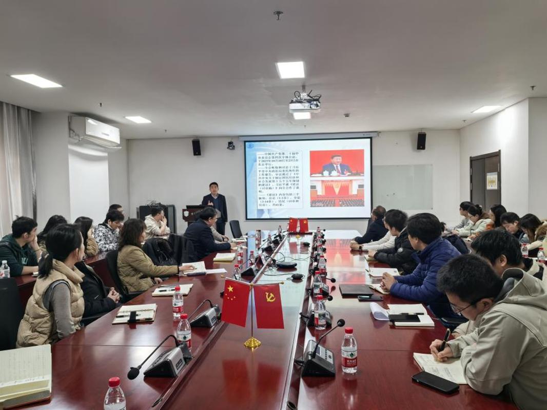 为深入学习贯彻党的二十届四中全会精神,引导全院师生切实将思想和行动统一到党中央的决策部署上来,近日,材料学院在仲英楼第三会议室开展“奋力开创中国式现代化建设新局面——党的二十届四中全会精神解读”专题学习,特邀马克思主义学院院长燕连福教授作专题报告。材料学院领导班子成员、党支部书记参加学习,会议由学院党委书记高宏主持。