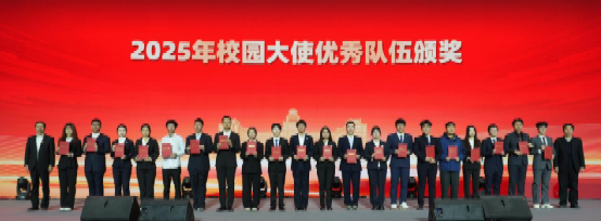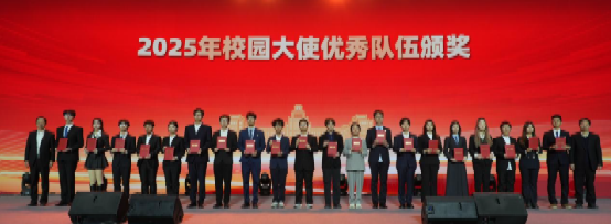 2025年寒假,全校共有5000余名学生参与校园大使活动,为招生咨询阶段的宣传工作打下了坚实的基础。经评选,共有46支队伍获评“2025年校园大使优秀队伍”,严俊杰、曹良志共同为获奖队伍颁发荣誉证书。