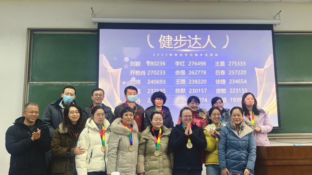 近日,西安交通大学财务处“冬日燃动 迈步向暖”健步走活动圆满结束,颁奖仪式在主楼D座206教室举行。活动自2025年11月21日启动,历时20天,全体在职员工积极参与,在运动中舒缓压力、增强体质,营造出健康向上、团结奋进的良好氛围。