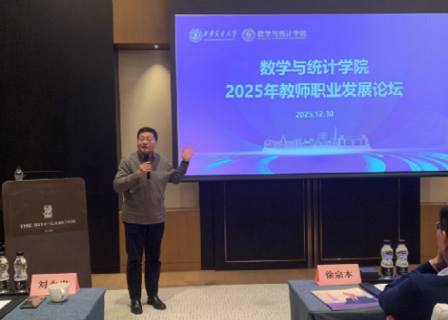 近日,数学与统计学院教师职业发展论坛成功举办。本次论坛旨在搭建青年教师交流平台,促进青年教师成长。会议特别邀请中国科学院院士徐宗本教授以及各学科方向领军学者担任评审专家,党委教师工作部部长、高层办主任刘莹,科研院副院长刘永忠,学院班子成员参会,会议由学院党委书记颜莉主持。