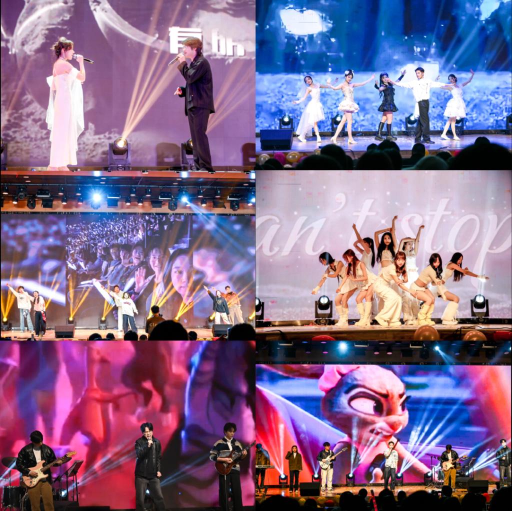 第三篇章在歌曲《光年之外》中徐徐展开。男女声深情对唱,唱出了跨越时空的信念与并肩前行的浪漫情怀。舞蹈《Psycho》以古典管弦乐与现代舞相融合,演绎内心世界的探索与自我突破。2025级硕博新生自编自排节目《像你这样的朋友》以活泼唱跳致敬成长路上相互陪伴的珍贵友谊。团舞《I can’t stop me》用充满力量的舞姿,展现青年学子对梦想的执着追求。晚会尾声,Westeak乐队以《这里是神奇的赛尔号》《派对动物》等动感曲目点燃全场,在热烈的音乐氛围中,共庆母校百卅华诞,迎接崭新的时代篇章。